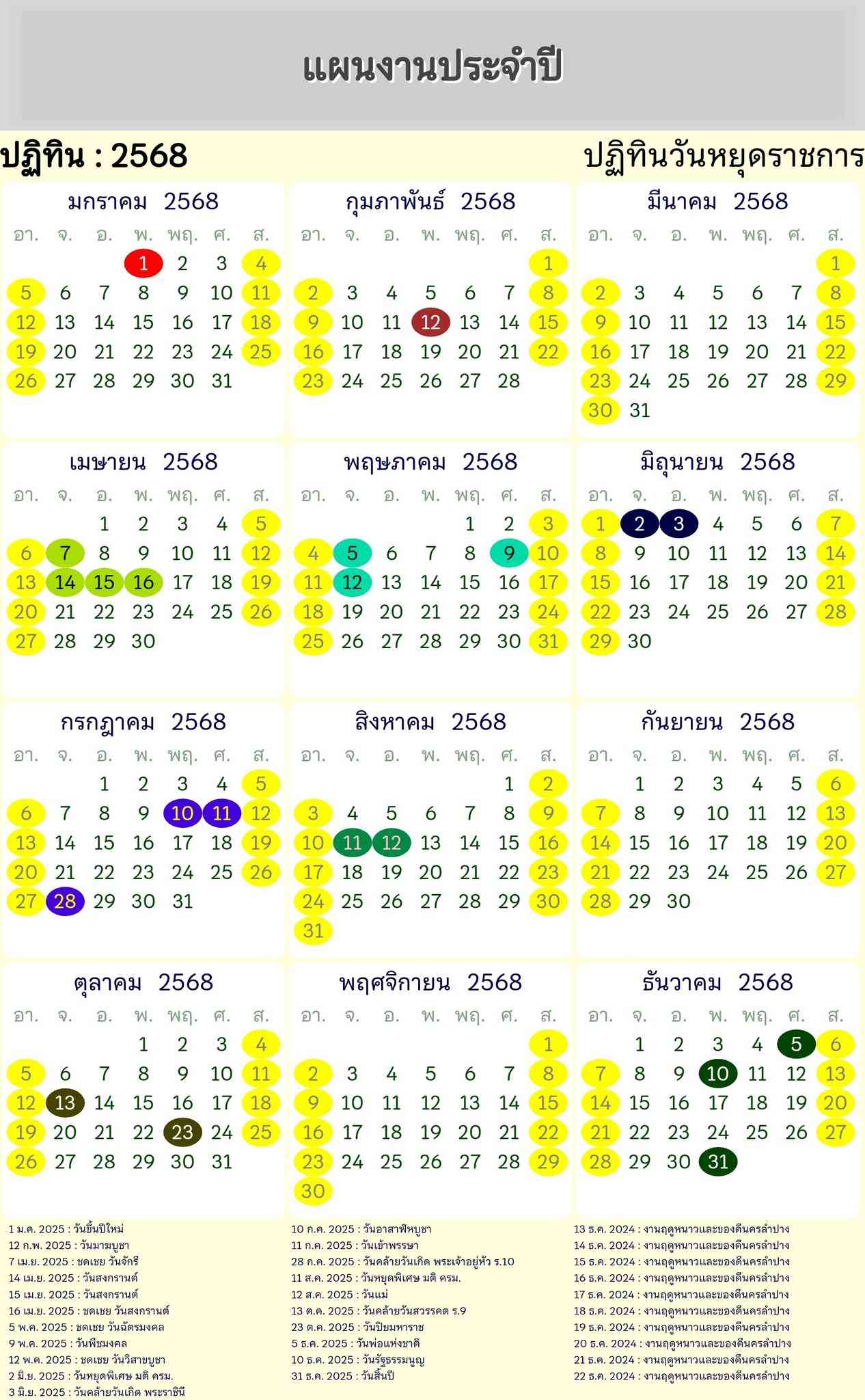 PDF | ปฏิทิน 2569 | ปฏิทิน 2568 | ระบบสร้างปฏิทิน | รวมปฏิทิน 2568 | ปฏิทินล้านนา